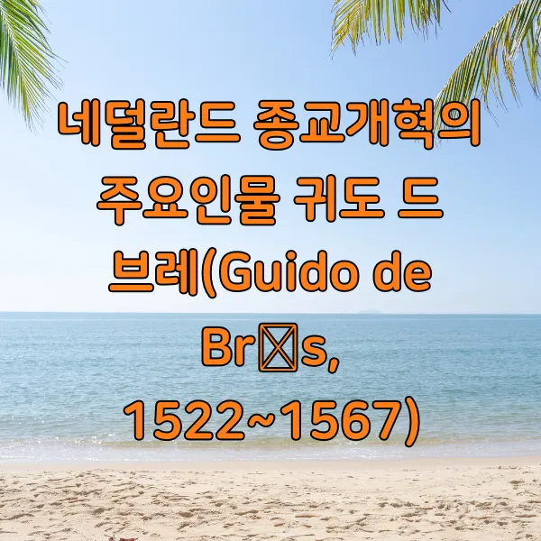 귀도 드 브레 (Guido de Brès, 1522~1567)는 네덜란드 종교개혁의 핵심 인물 중 한 명입니다. 그는 프랑스어를 사용하는 벨기에 남부 몽스(Mons)에서 태어났습니다. 당시 네덜란드는 스페인의 압제하에 있었고, 종교적으로는 가톨릭이 지배적인 사회였습니다. 하지만 마르틴 루터와 장 칼뱅의 종교개혁 사상이 빠르게 확산되면서, 네덜란드에도 새로운 신앙을 갈망하는 사람들이 늘어나기 시작했습니다.